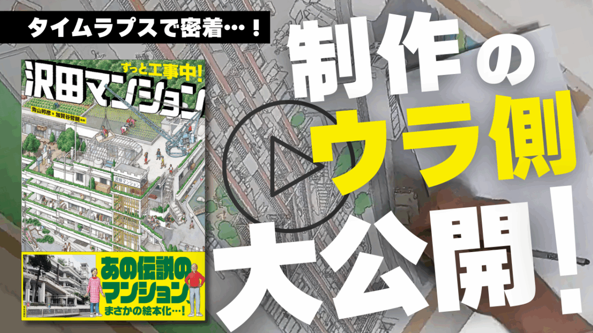 田んぼや釣りぼり池。バラバラな間取りの住戸。迷路のような階段やスロープ。専用リフトや屋上クレーン。なんでも手づくりしてしまう夫婦が増築に増築を重ねた伝説のセルフビルド建築・沢田マンション。その建設と改造のプロセスが、子どもも大人も楽しめる絵本になりました! 9月下旬の発売を前に、書籍に収録された12…続きを読む