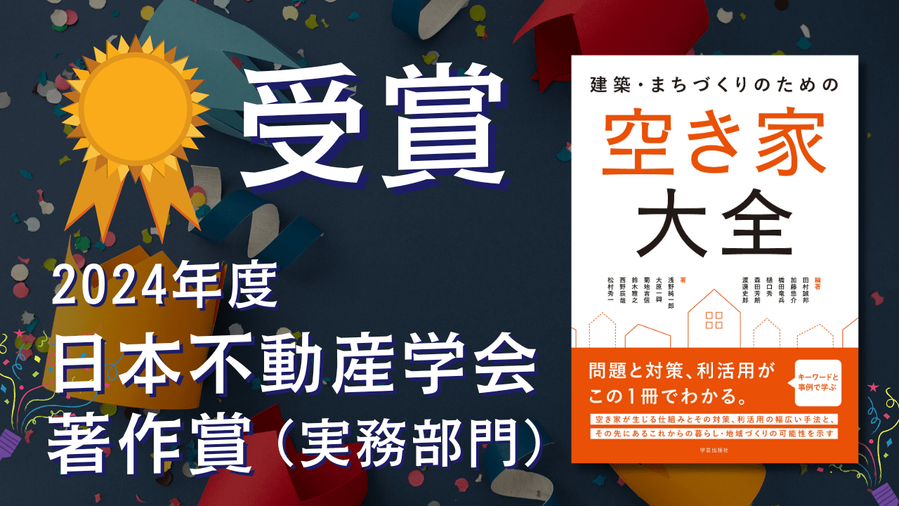 『建築・まちづくりのための空き家大全』(田村誠邦、加藤悠介、橋田竜兵、樋口秀、森田芳朗、渡邊史郎 編著)が2024年度日本不動産学会著作賞を受賞しました