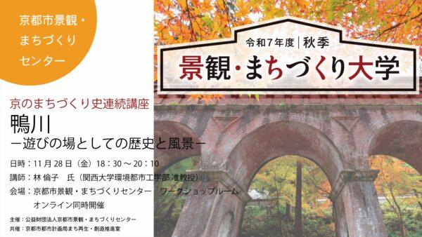 京のまちづくり史連続講座 鴨川-遊びの場としての歴史と風景-(2025/11/28|京都) 日時:2025年11月28日(金) 18:30~20:10 会場:京都市景観・まちづくりセンター ワークショップルーム(京都市下京区西木屋町通上ノ口上る梅湊町83番地の1 ひと・まち交流館 京都 地下1階) 参加費:一般 1,000円 学生 500円 詳細・申込:https://www.kyoto-…続きを読む 2025年10月27日 / 最終更新日時 : 2025年10月27日 学芸出版社 イベント案内