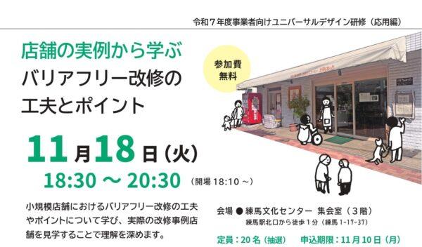 【店舗の実例から学ぶ】バリアフリー改修の工夫とポイント(2025/11/18|東京) 日時:2025年11月18日(火)18:30 ~ 20:30 会場:練馬文化センター 集会室(東京都練馬1 -17-37 3階) 参加費:無料 定員:20名(抽選) 詳細:https://nerimachi.jp/eventinfo/ud_oyoR7.php 申込:電話またはHPから、お申込みくださ…続きを読む 2025年10月31日 / 最終更新日時 : 2025年10月31日 学芸出版社 イベント案内
