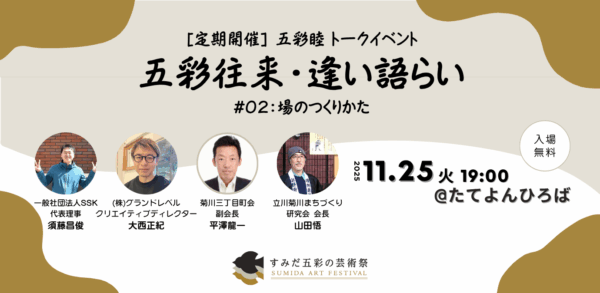 [定期開催] 五彩睦トークイベント #02〜場のつくりかた〜(2025/11/25|東京) 日時:2025/11/25(火)19:00〜20:30(18:30開場) 会場:たてよんひろば(墨田区立川4-9-3) (雨天時会場:WORK CINEMA Paradise(墨田区菊川3-7-1 菊川会館ビル2F)) 参加費:無料 詳細・申込:https://gosaiourai02.peatix…続きを読む 2025年11月14日 / 最終更新日時 : 2025年11月14日 学芸出版社 イベント案内