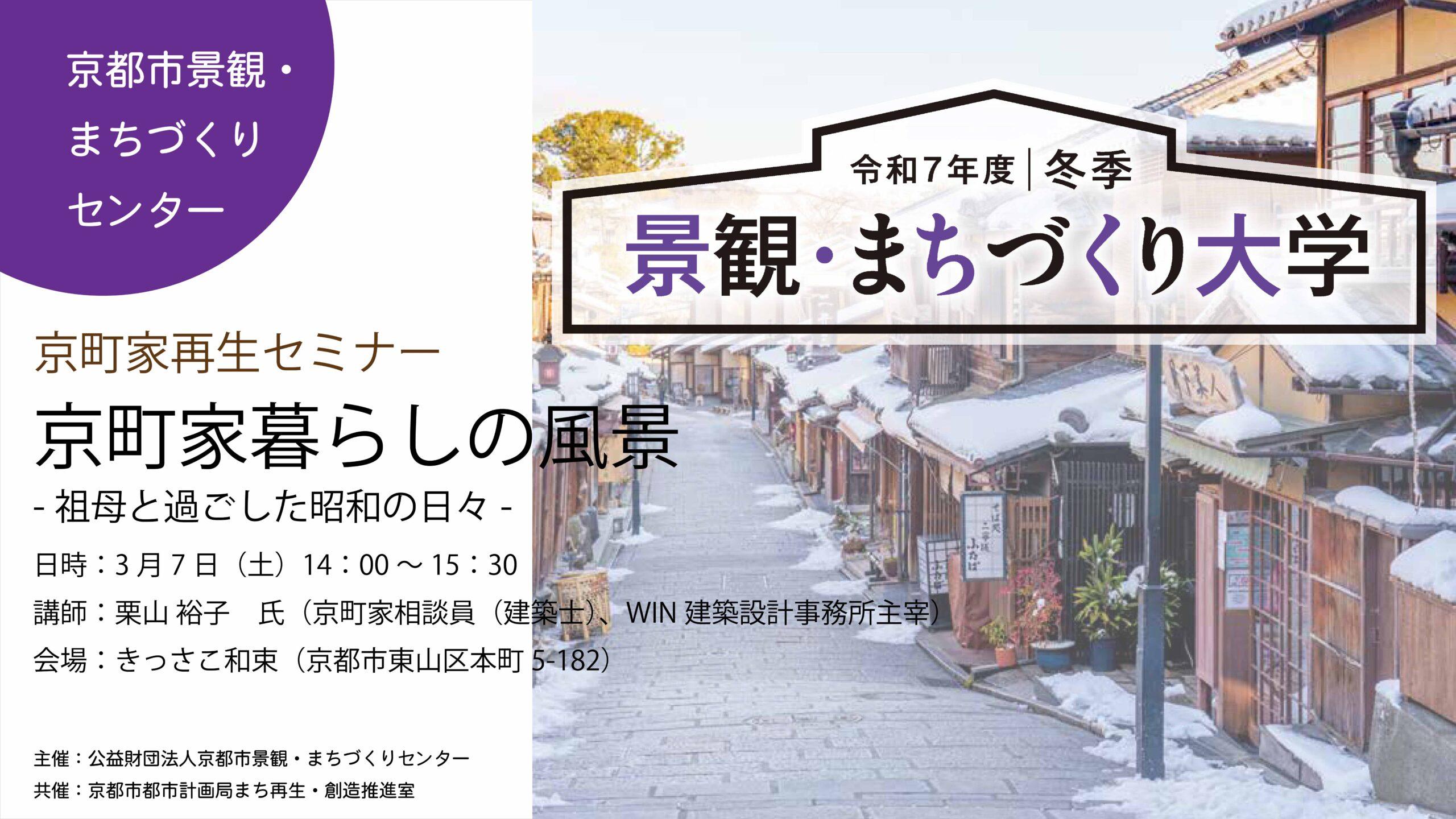 景観・まちづくり大学 京町家再生セミナー「京町家暮らしの風景 -祖母と過ごした昭和の日々-」