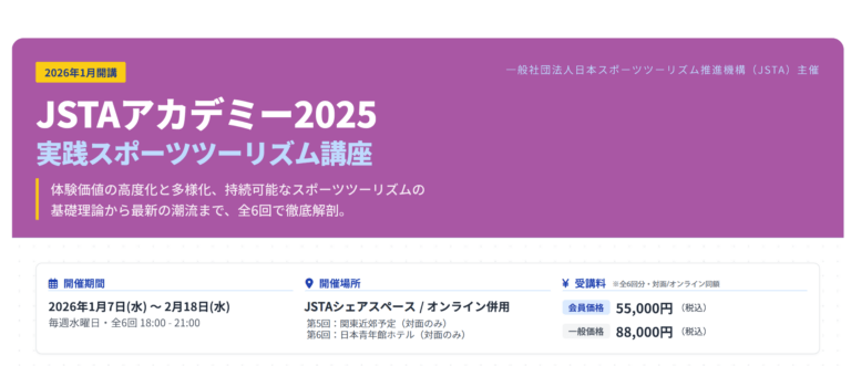 JSTAアカデミー2025「実践スポーツツーリズム講座」(2026/01/07-02/18|東京・オンライン)