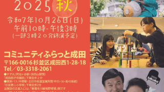 日時:2025年10月26日(日)12:30~14:00 会場:コミュニティふらっと成田(杉並区成田西1-28-18) 参加費:無料(定員|先着40名(大人・子ども合わせて)) 詳細・申込:https://www.city.suginami.tokyo.jp/s023/event/21761.htm…続きを読む