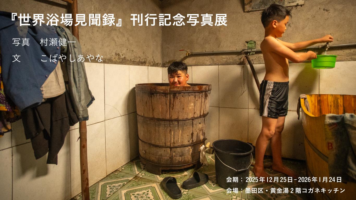 東京墨田区・黄金湯2階のコガネキッチンにて〈こばやしあやな著『世界浴場見聞録』刊行記念写真展〉が開催されています。村瀬健一さんの写真に、世界各地の浴場を紹介する文が添えられています。
