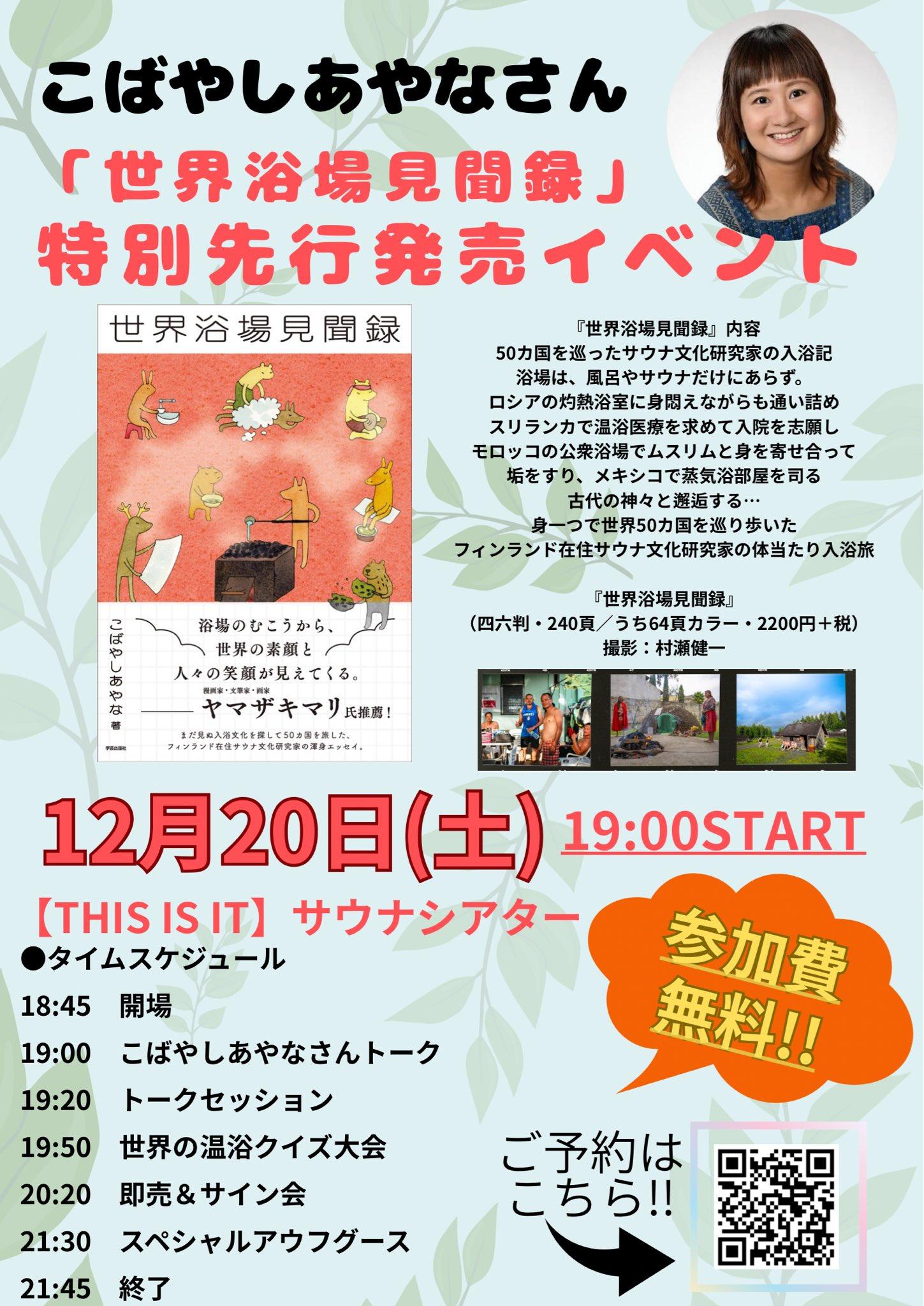 2025年12月22発売『世界浴場見聞録』のリリースを記念しまして著者こばやしあやなさんをお招きして書店に並ぶ前の特別先行発売イベントを開催します