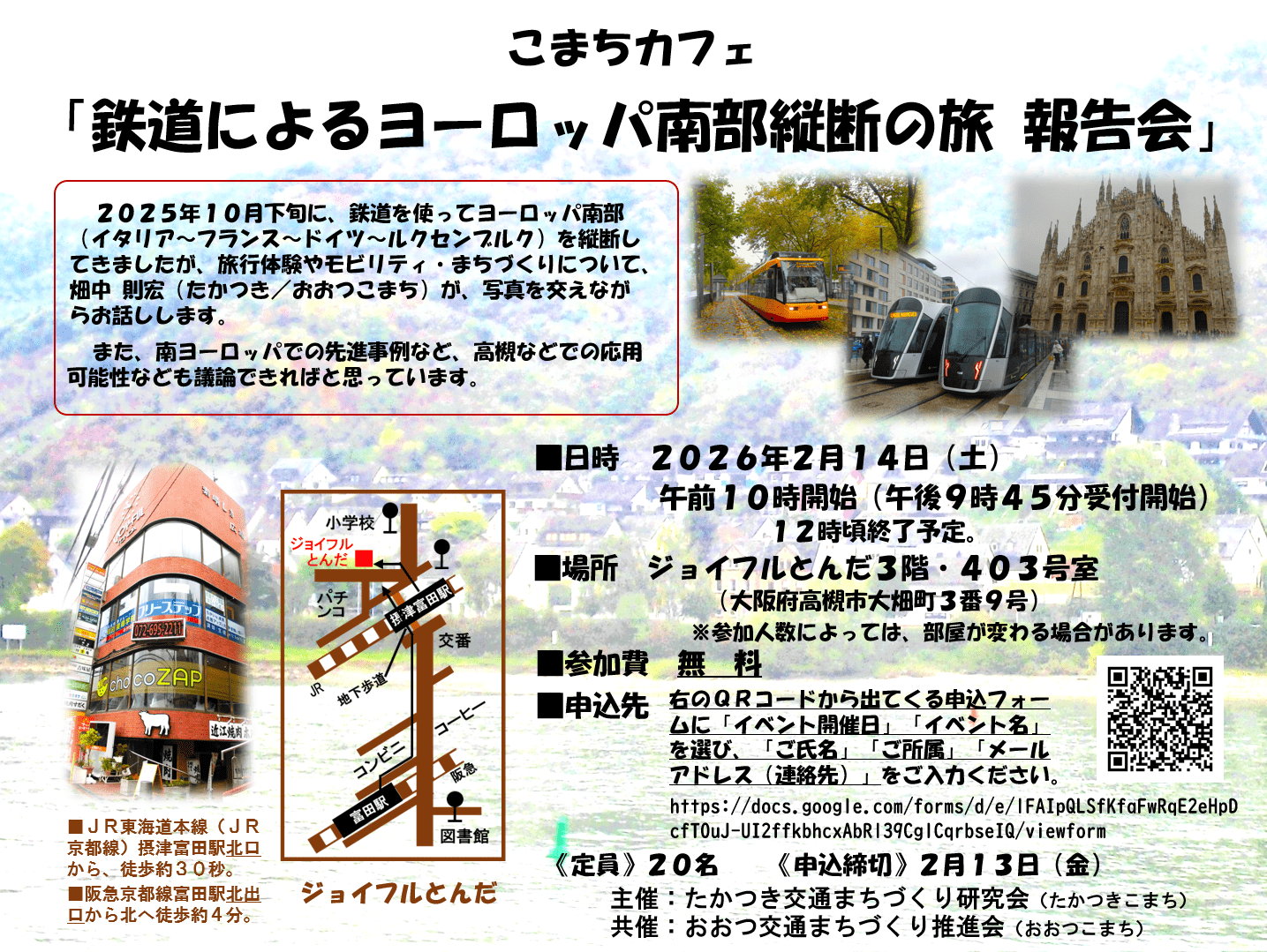 | 主催 | たかつき交通まちづくり研究会(たかつきこまち)/共催:おおつ交通まちづくり推進会(おおつこまち) |