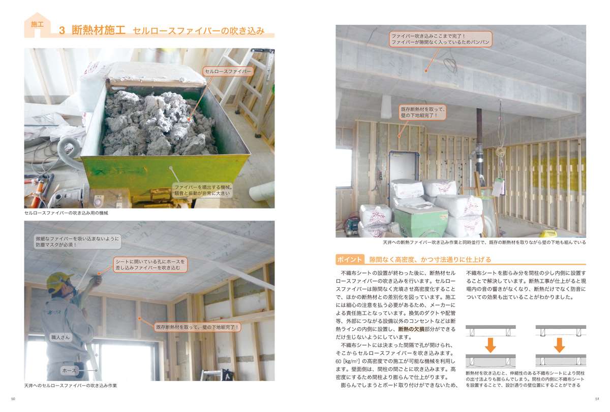 |COLUMN| セルロースファイバー断熱材の性能 - 施工1 躯体工事 改修はメンテナンス必須
