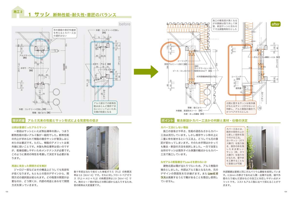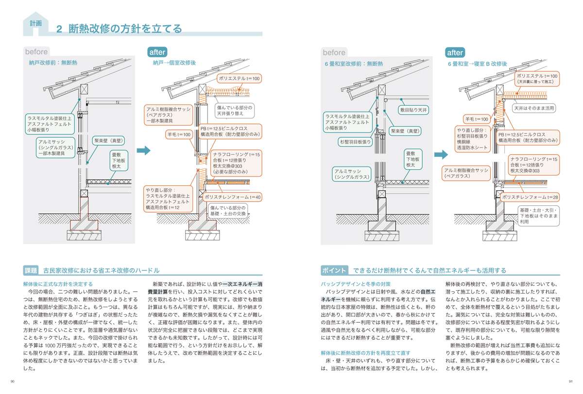 5 断面方向の断熱デザイン 改修前後矩計図 - 検証1 断熱材の性能を数値で評価する
