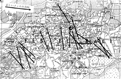 出典: Bonine, Michael, E. 1990 "The Sacred Direction and City Structure -A Preliminary Analysis of the Islamic Cities of Morocco-", Muqarnas, 7, pp.50-72. 但し日本語訳として、1994 『モスクが語るイスラム史』,中央公論社 より再引用