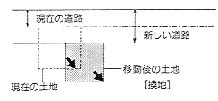 土地区画整理事業は、 土地所有者が道路、 公園などの公共施設に必要な土地を出しあって(これを減歩という)、 土地の配置換え(これを換地という)によって土地を集約し用地を生み出し公共施設を整備する事業である(下図参照)。