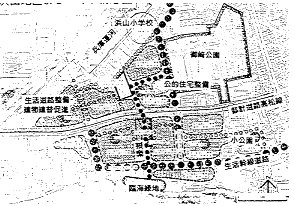 土地区画整理事業とあわせて地区の住環境を総合的に改善するため、 まちづくり事業によって住宅に困まる住民が入居できる受皿住宅(コミュニティ住宅)の供給、 集会所、 まちかど広場など生活環境施設の整備を行う事業であり、 現在第1住宅(56戸)が工事中、 第2住宅(85戸)が実施設計を終え、 平成7年度着工の予定である。地元の取り組みについて