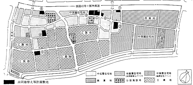 国道43号南側に接する準工業地域で、 環境問題をきっかけに平成3年より神戸市の「まちづくり条例」に基づくまちづくり協議会を組織し、 住民参加のまちづくりに取り組んできた。