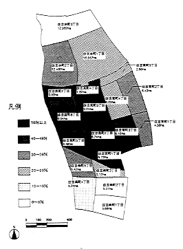 1)倒壊及び使用不能建物の件数は、 30%を越す地区が、 20町丁目数のうち12に及び、 あらためて住吉の被害の大きさと人口流出が明らかになった。