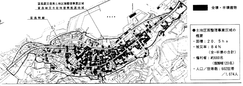この間、 3月26日には、 復興まちづくりについてのコンセンサスの形成を図り、 土地区画整理事業を進める場として富島地区震災復興協議会が発足し、 部会を含めてこれまでに計12回の会合が開かれた。