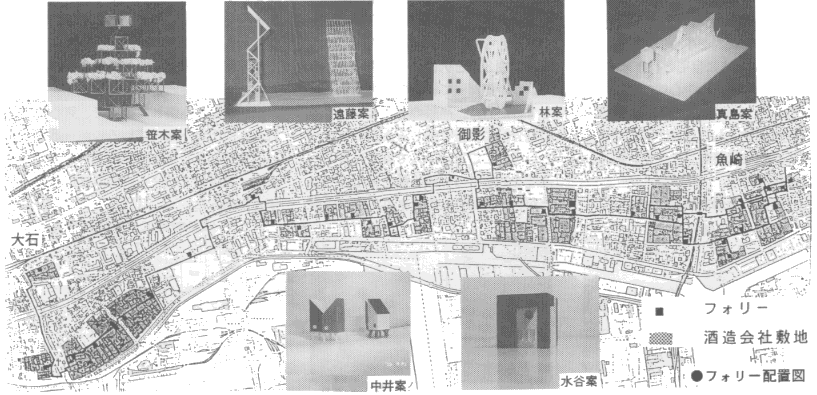 「フォリー」という仮設的な装置を設置することにより、 復興過程の中でも、 地元民やそこを訪れる人達も共に灘の酒を肴に、 語り合い、 協力しあう機会が出来、 震災前以上に活き活きとした酒蔵の町を取り戻してもらいたい。