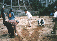 2月24日、 芦屋市ケア付き仮設住宅と隣接の一般仮設住宅で、 入居者と生活援助員の参加のもとに、 コレクティブハウジング事業推進応援団が一緒にパンジー500株を植えました。ケア付き仮設住宅のおばあさんたちは草花の好きな方が多く、 杖をついたり、 連れもって出てこられました。