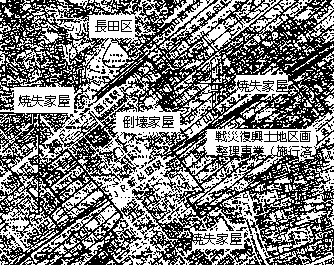 しかし新長田駅周辺でみると、 山陽電鉄西代駅からJR新長田駅さらに五位池線を中心にJR新長田駅の南側一帯等は、 戦災による焼失が比較的少なかったこともあって、 戦災復興土地区画整理事業区域に含まれなかった。