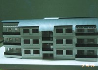 しかし、 南北方向に共用廊下を配し、 それにハングするかたちで3戸の住戸を接続させることによって、 各戸は隣戸に接さず、 3面開放のプランとなり、 プライバシー・採光・通風の優れた共同住宅を計画できた。