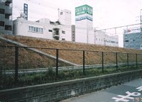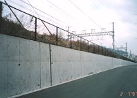 ここの土手は鉄軌道から法面で下がり、 その裾には1〜2米幅の平地があって、 JR敷地と道路境界にフェンスがある。