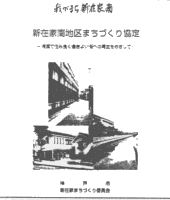 平成9年2月には、 まちづくり協定の内容を住民の皆さんにより深く知ってもらうため、 新在家まちづくり協定パンフレット(A4・カラー8ページ)を作成し、 全員に配布した。