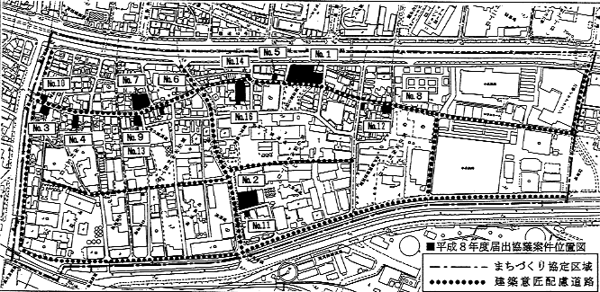 まちづくり協定区域における平成8年度届出協議案件位置図復興すまいづくり