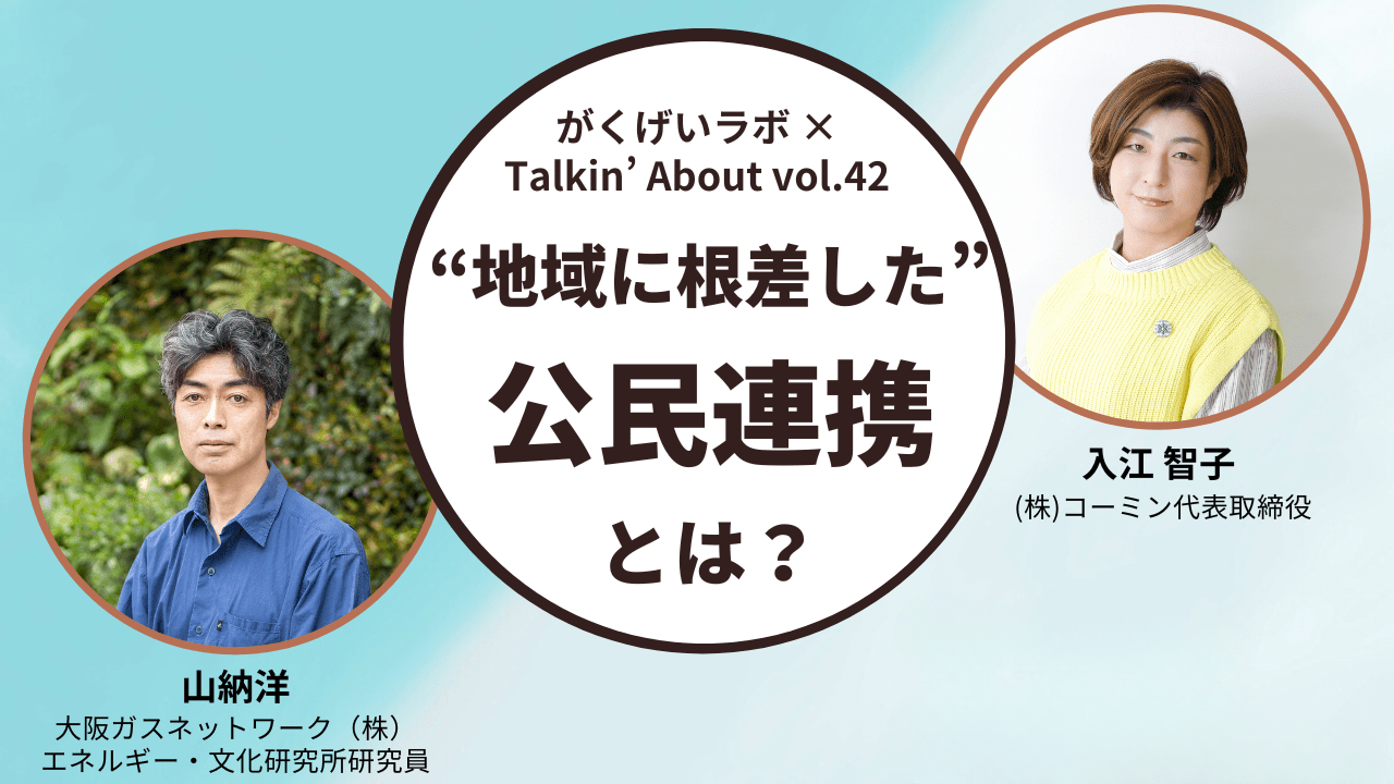 | 収録元 | 入江智子×山納洋「“地域に根差した”公民連携とは?」がくげいラボ×Talkin’ About vol.42(2025/9/19|京都・オンライン) |