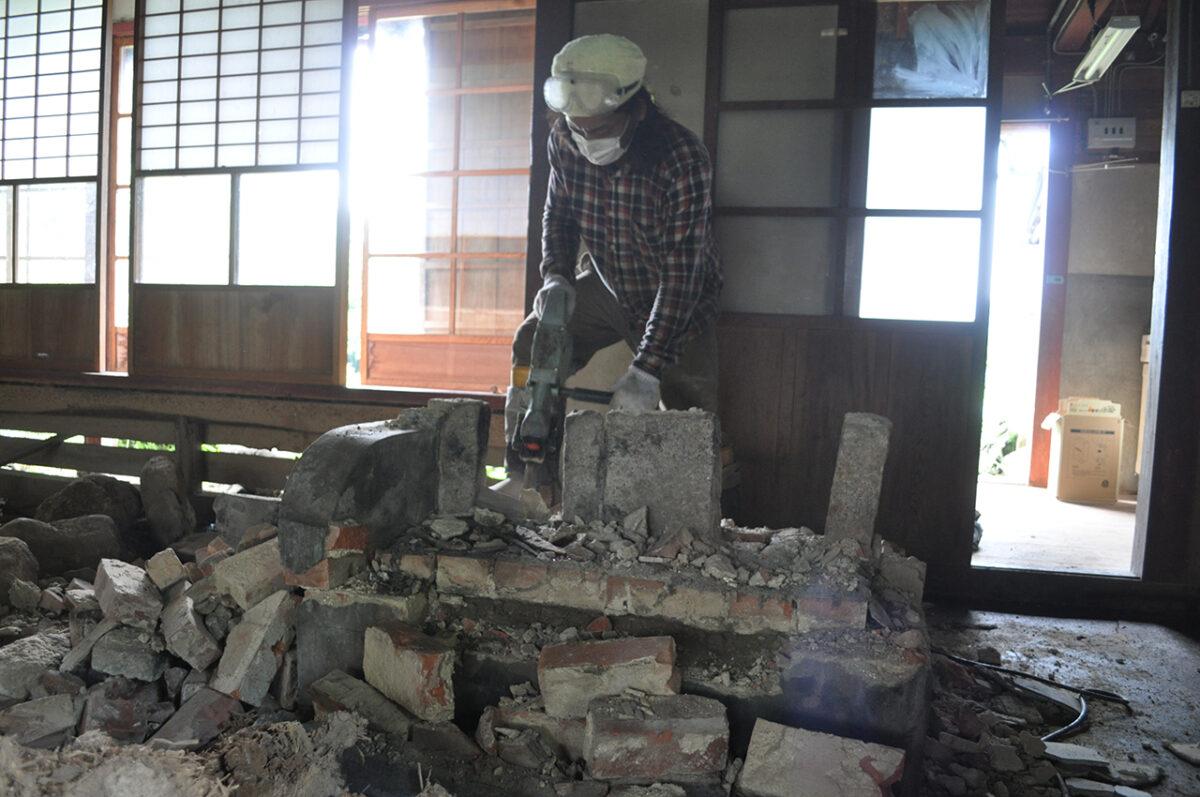 「はじめは怖いけど、まず壊してみたらやり方がわかって先が見えてくる」という、空き家改修の先輩フクイアサト氏の言葉を信じ、まだどんな家にするか詳細は決まっていないけど、とにかく変えたい部分を壊して取り除いてみることにした。