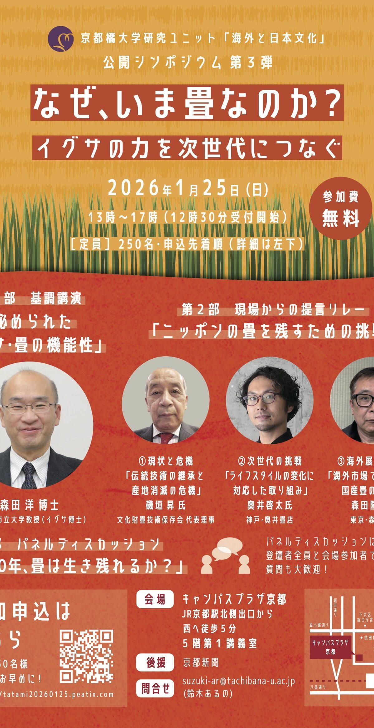 - 定員:会場参加30名、オンライン参加500名(要事前参加申込)