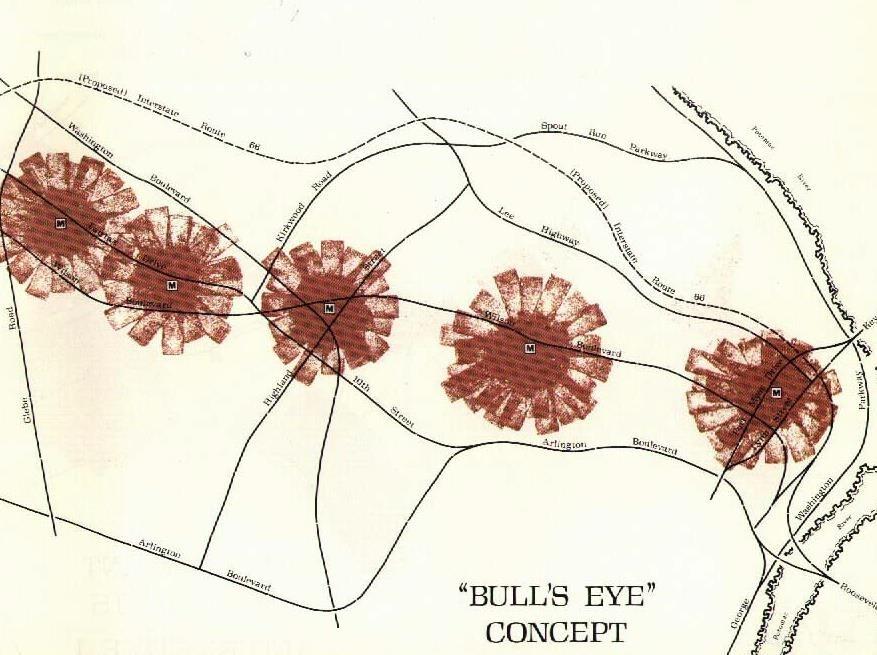 Michael Samuelson, Reducing cars and increasing development: How the creation of a viable transit oriented development corridor in Arlington, Virginia has sparked growth, Macalester Digital Commons, Spring 2009)に詳しい。