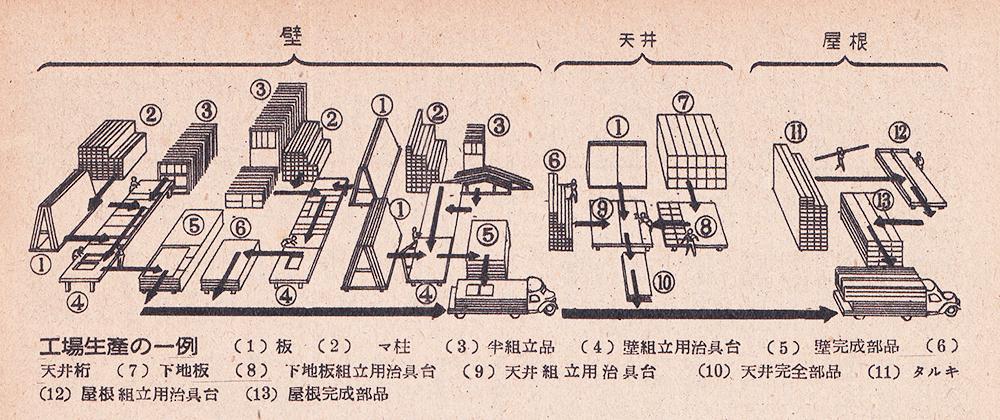 工場で家をつくる試みは、大量生産の計画は立てられても、いざ施工するとなると計画をなしくずしにするトラブルが発生しがちなことや、各地で建てるための生産組織なくして住宅建設はありえないと改めて認識させた。