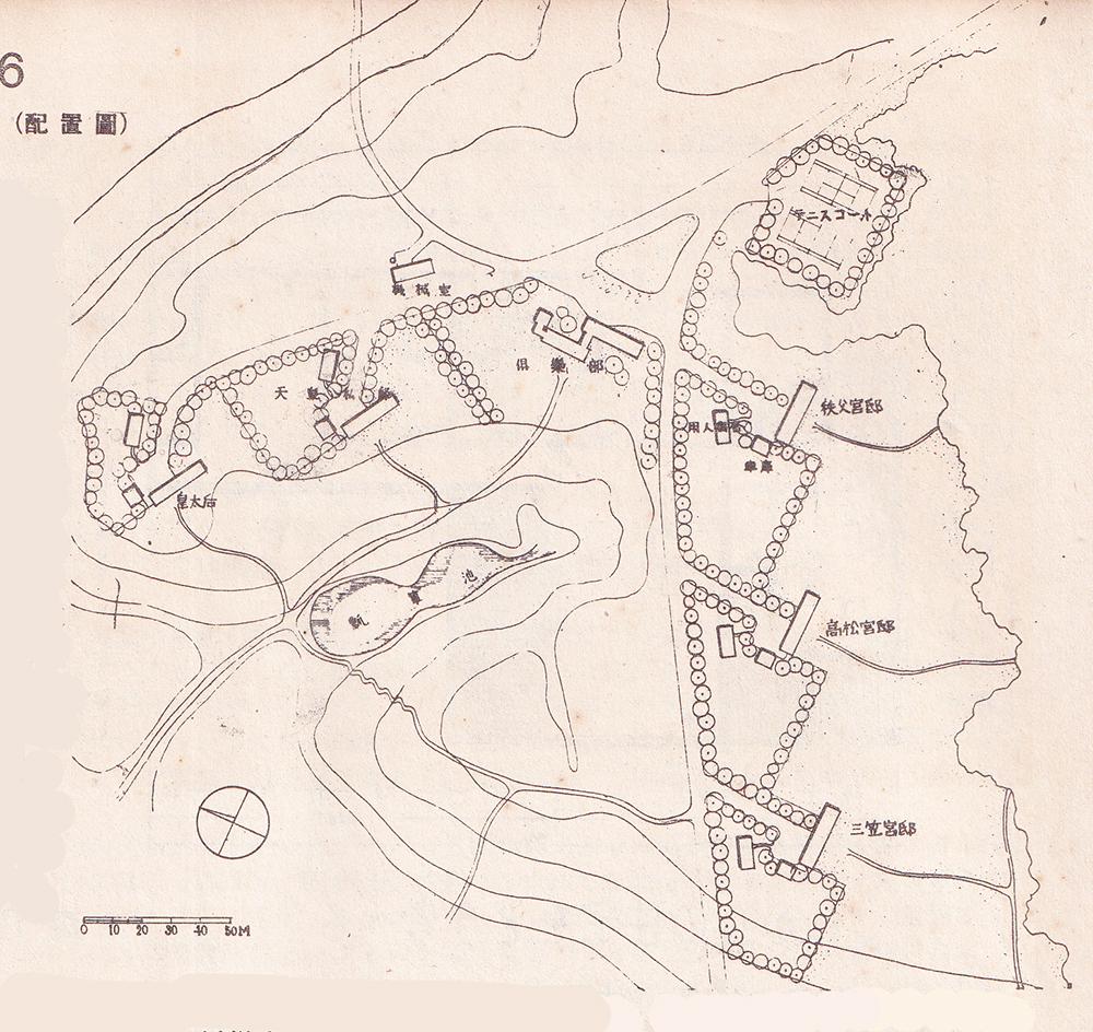 「100万人のプレモス住宅」とアピールされたこの住宅が想定する居住者は労働者だけではなかった。なんと天皇陛下をはじめ皇族たちが住まう住宅群としても提案されている。題して「皇族方の集合住宅案」【図2】。計画地である白金御料地跡に配置された5つの住宅群は、それぞれ皇太后邸、天皇私邸、秩父宮邸、高松宮邸、三笠宮邸で構成され、さらに倶楽部やテニスコートが描かれている3。天皇陛下にこそ「プレモス」に住んでいただきたいという前川の提案にはひとつのねらいがあった。