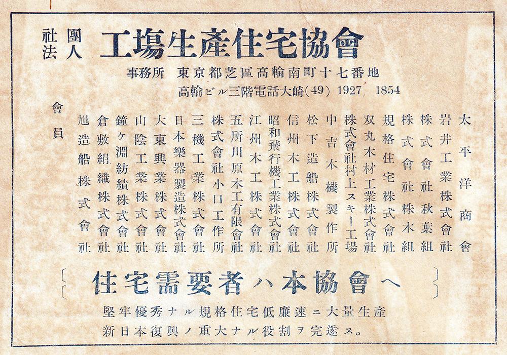 この手痛い失敗の反省を活かし、1946(昭和21)年10月には質の高い規格住宅の大量建設へ向けて「工場生産住宅協会」が発足した【図4】。