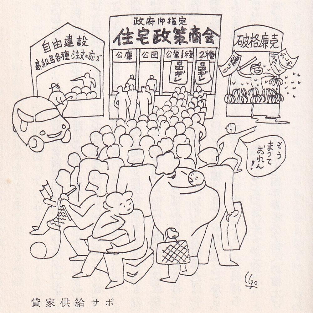 戦時中に労務者住宅の供給を担った住宅営団は敗戦早々に廃止命令が下り、この頃は閉鎖機関として整理の真っ最中2。営団から公庫への転換は、国家による「直接的住宅供給」から、国民がそれぞれ自力で住宅を建設し、国はその建設資金を融資するという「間接的住宅供給」への転換を意味した。