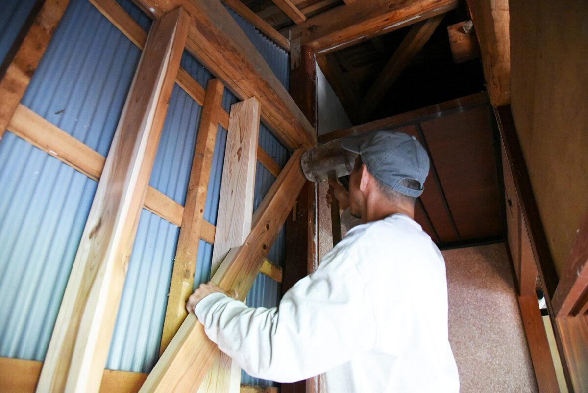 ここからは、今回の実践で採り入れた構造用合板による耐震補強の施工手順を紹介します。