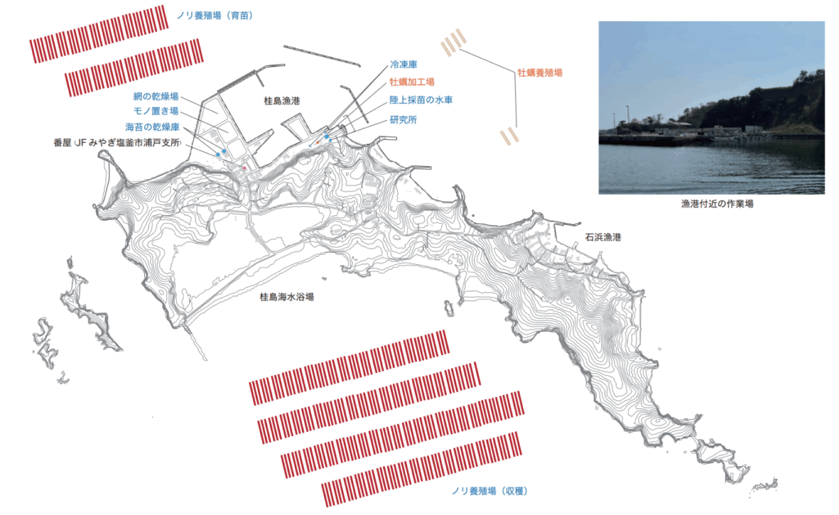 一方で、漁業再建に向けた動きも見られ、個人事業主では困難な道具や機材の調達は合同会社化により克服し、塩釜市と協力して、地域おこし協力隊の受け入れ、担い手育成にも取り組んでいる。